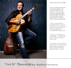 New Album release “Get It” Threestyle feat. Magdalena Chovancova on the sax, is a groovy blend of Smooth Jazz, Pop and Soul. Recorded at the legendary Funky Joint Studio Los Angeles. Produced by double Grammy winner producer and guitarist Paul Brown and with incredible musicians, like on the keyboards Jeffrey Freeman, Guitar Michael Ripoll, bass James L.Manning, drums Mike Shapiro, WhaWha guitar Paul Brown, saxophone Magdalena Chovancova and guitar Robert Fertl. Written by DeYon Dobson, Paul Brown, Boney James, Tim Owens, Jeffrey Freeman, Robert Fertl and Magdalena Chovancova. Recording and Mixing by Paul Brown. Mastering by Steve Hall at futurediscsystems. Copyright 2014 Welovemusic Records LC29003